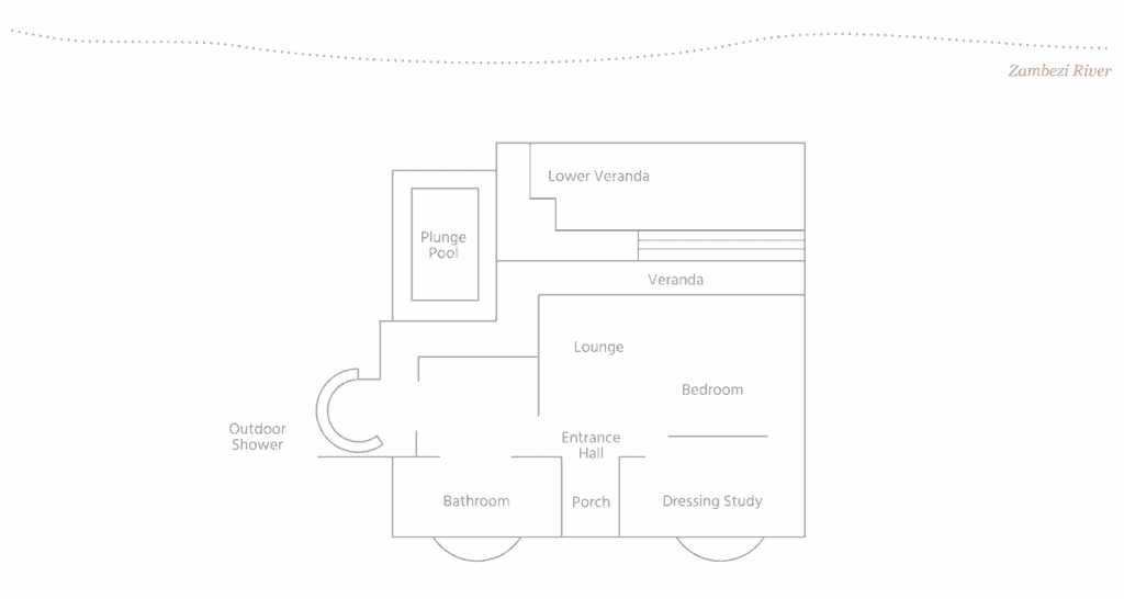 Each Matetsi River Lodge suite is air-conditioned and fitted with a sumptuous king-size bed, circular bathtub, indoor and outdoor rain showers, a private plunge pool and decks that flank inspiring views of the Zambezi.