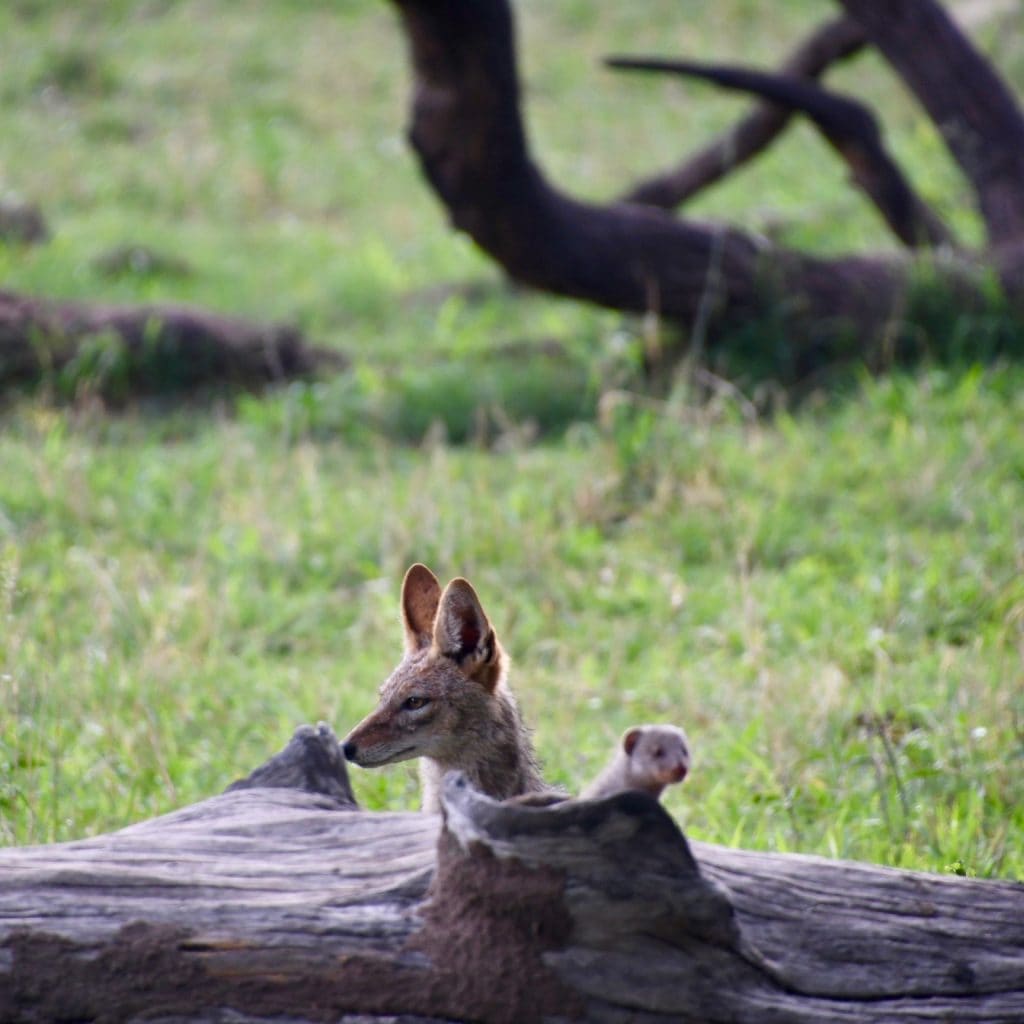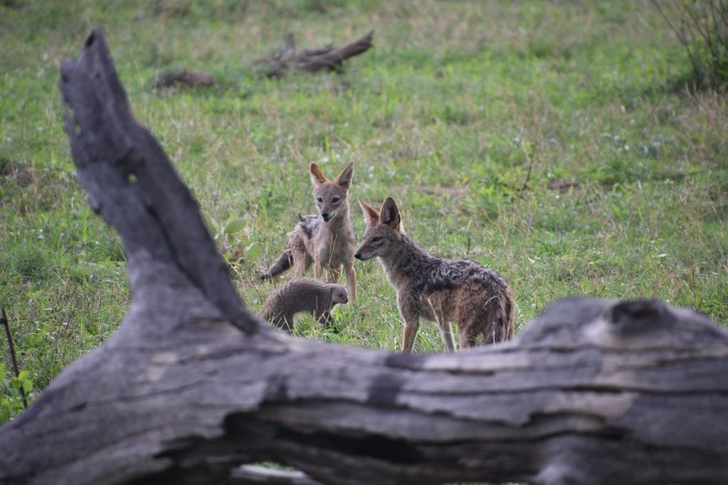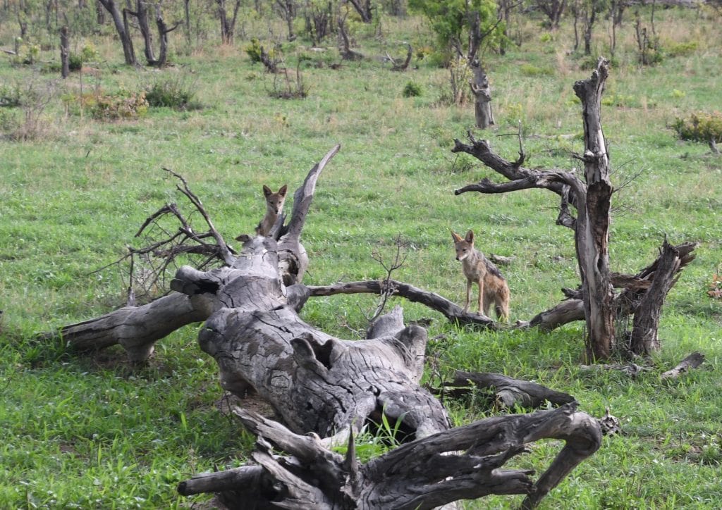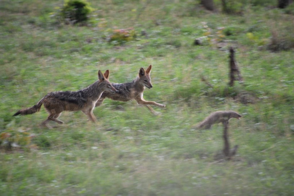 In nature, you never know what you’ll see. One of the most fascinating sightings of the month was a great example of that: jackal hunting mongooses. The mongooses had found shelter in the hollow of a fallen tree stump. Two jackals worked together to flush them out. Though the mongooses were aggressive and very fast and managed to elude the jackals.